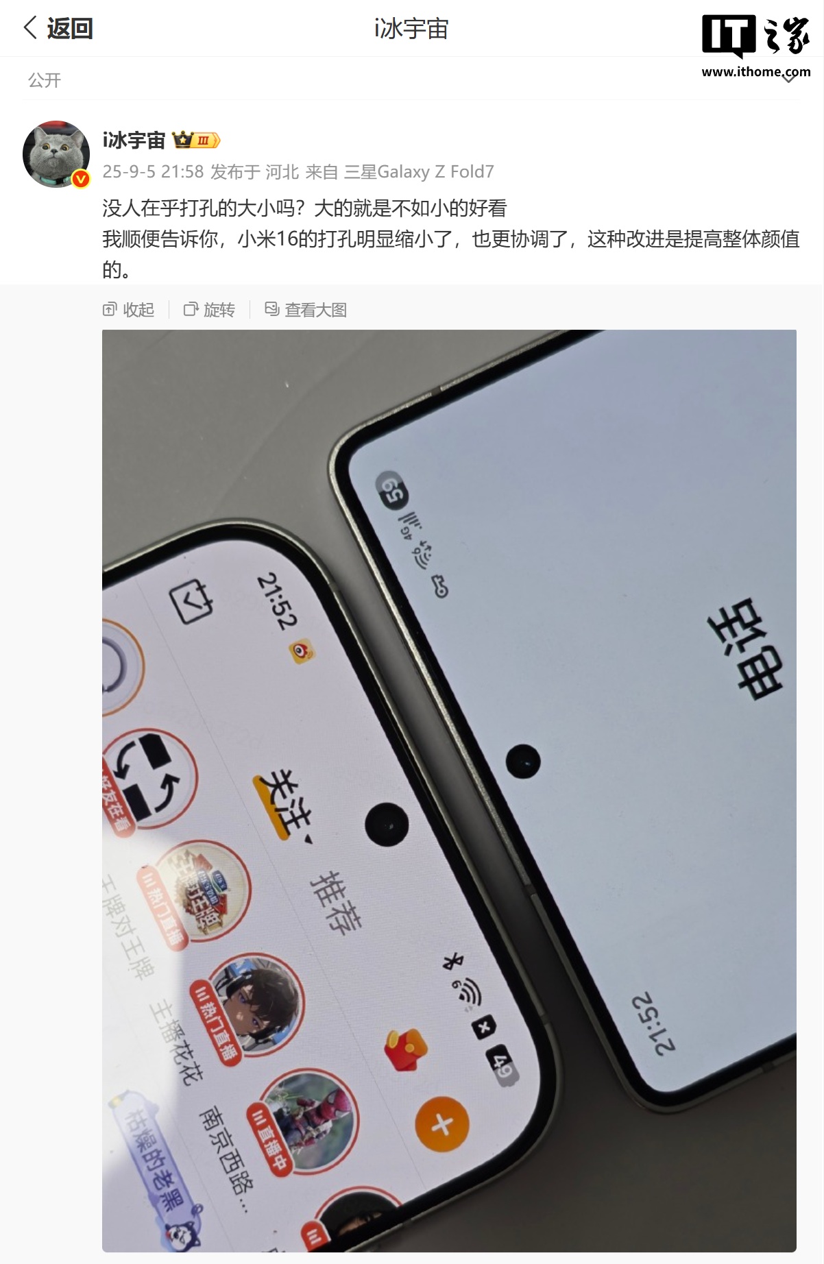 我顺便告诉你,小米 16 的打孔明显缩小了,也更协调了,这种改进是提高整体颜值的。